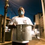 Moradores fazem fila para receber 1L de sopa no bairro Vicente Pinzón