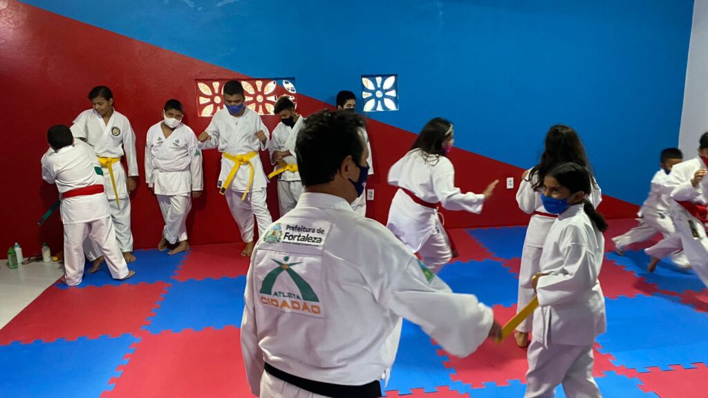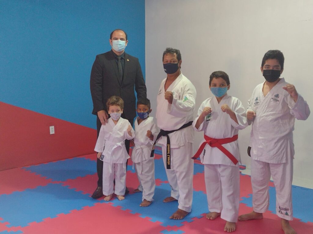 Francisco Rebouças dos Reis Júnior conhece os alunos do karatê e o Prof. Laércio